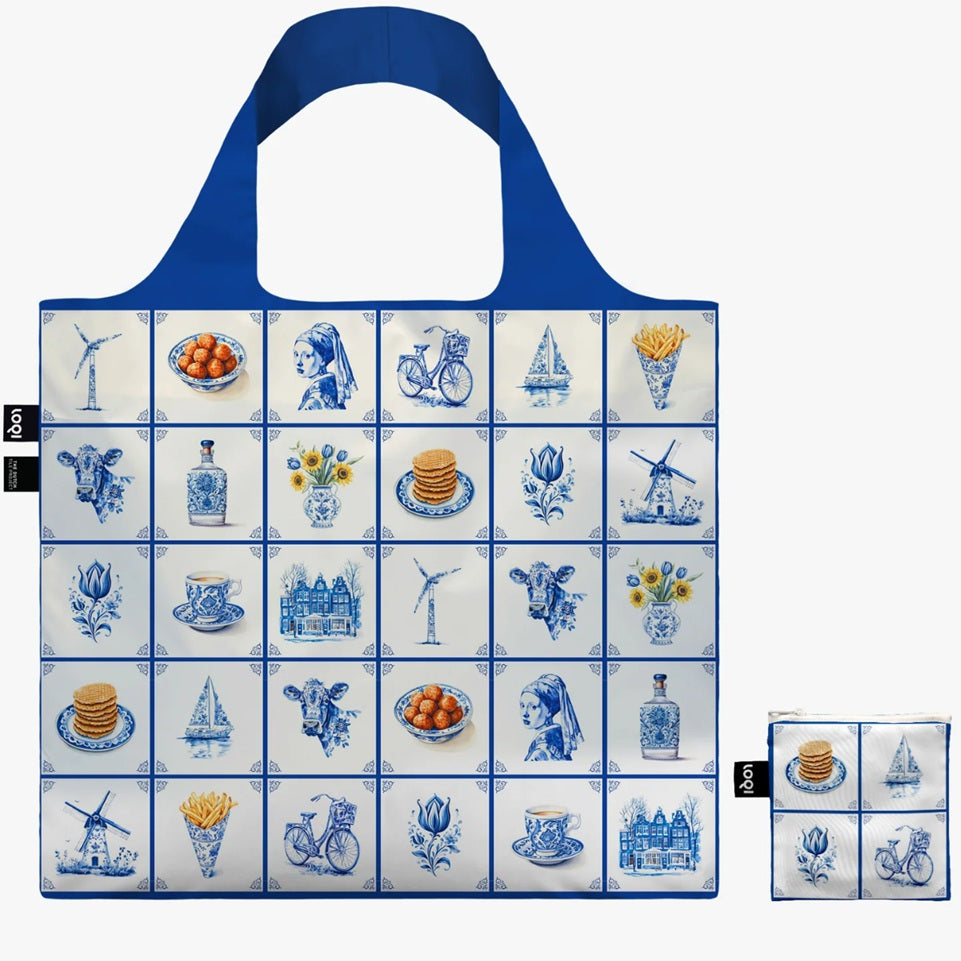 Add a modern twist to the beloved tradition of Dutch Delftware. Each Delft blue tile tells a unique story—whether it's a memory, a passion, or an inside joke—these wonderful one-of-a-kind illustrations are delighting people globally. From funky to heritage designs, the Delft blue from Amsterdam is now available on our recycled bags in collaboration with © The Dutch Tile Project.