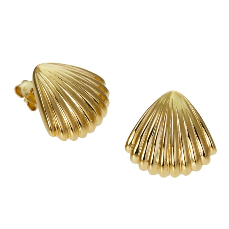 Delicate gold vermeil seashell stud earrings, designed for a minimalist, beach-inspired look. Perfect for adding a subtle coastal touch to any outfit, these sculpted studs are both elegant and versatile.