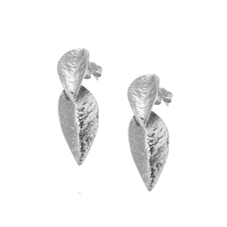 Silver Double Leaf Stud Earrings